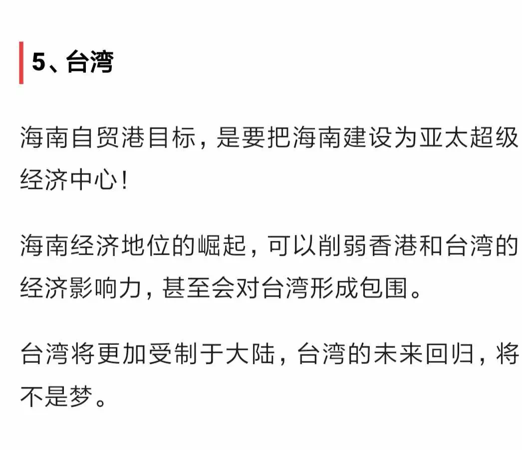 在南海这么敏感的地方搞和台湾一样大的自贸港,其政治含义是什么?