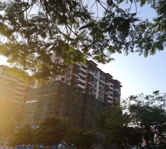 5-15F外墙真石漆完成;5-15F外架拆除完成;