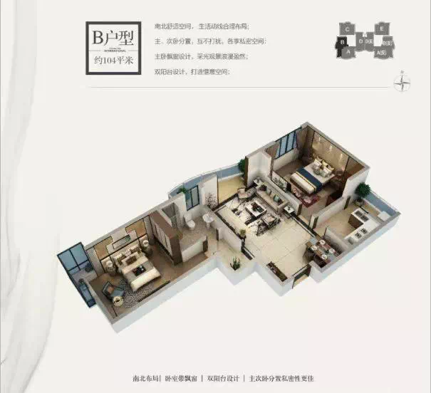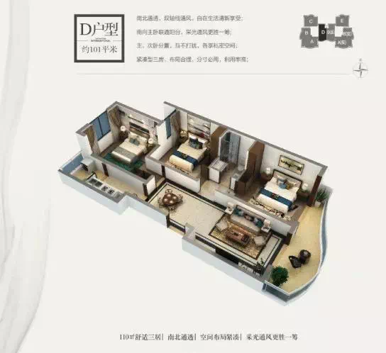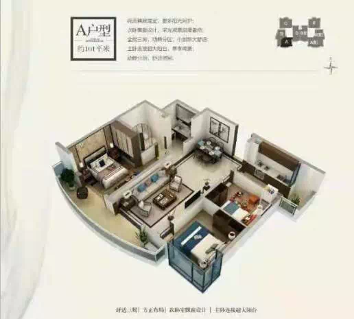 目前主推106平米大两房,南北舒适空间,方正宽敞大阳台,延景入室,生机盎然,南北通透,静谧一角,风雅静逸。