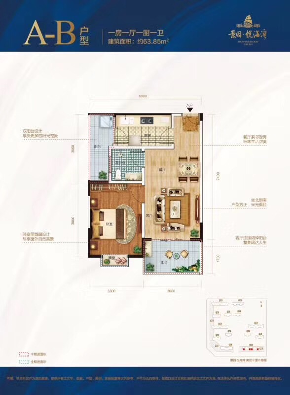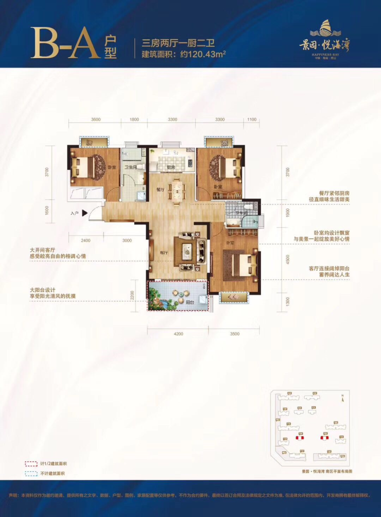 室室方正,宽敞明亮,尽展舒适生活尺度主卧带独立卫生间,明亮通风、尊享气派,超宽客厅带超大面积观景阳台,观湖瞰海,厨房配生活阳台,让生活的情趣自然流露