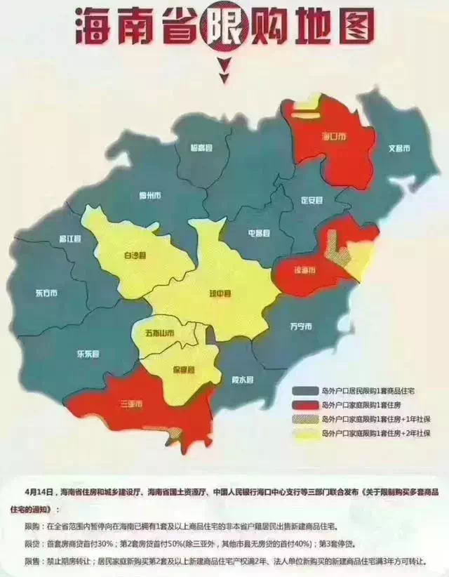 好了,今天就分析这么多,希望这些建议能帮到那些想来海南买房的人,买到称心的房子。最后,附上一张海南目前的限购地图。要知道,现在海南的房子不是你想买哪里就可以买的了,还要看你有没有资格!