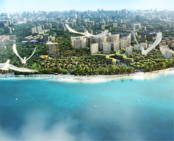 项目位于长流起步区西北侧滨海区域,滨海大道与粤海大道交汇处西北角[新海港北侧],北临琼州海峡与大陆相望,南侧邻近市政府办公区与居住区。