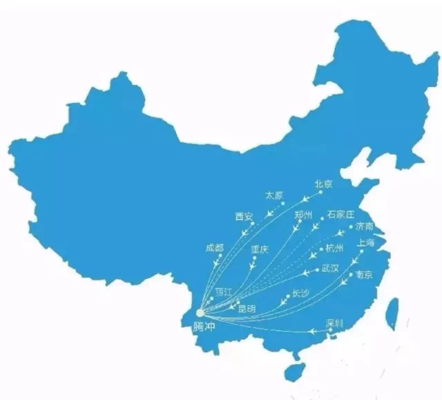 2017年腾冲驼峰机场102.7万人次吞吐量成功入围吞吐量百万人次行列,目前已开通至北京、深圳、重庆、成都、西安、长沙、南京等累计17条支行航线。