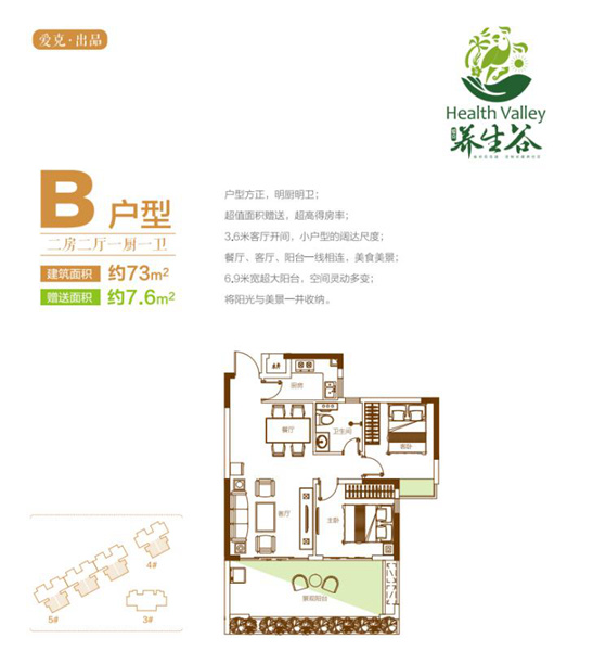 定安低密度、高绿化生态社区,73㎡朝南户型,3.6米客厅开间超高得房率,总价617676元。