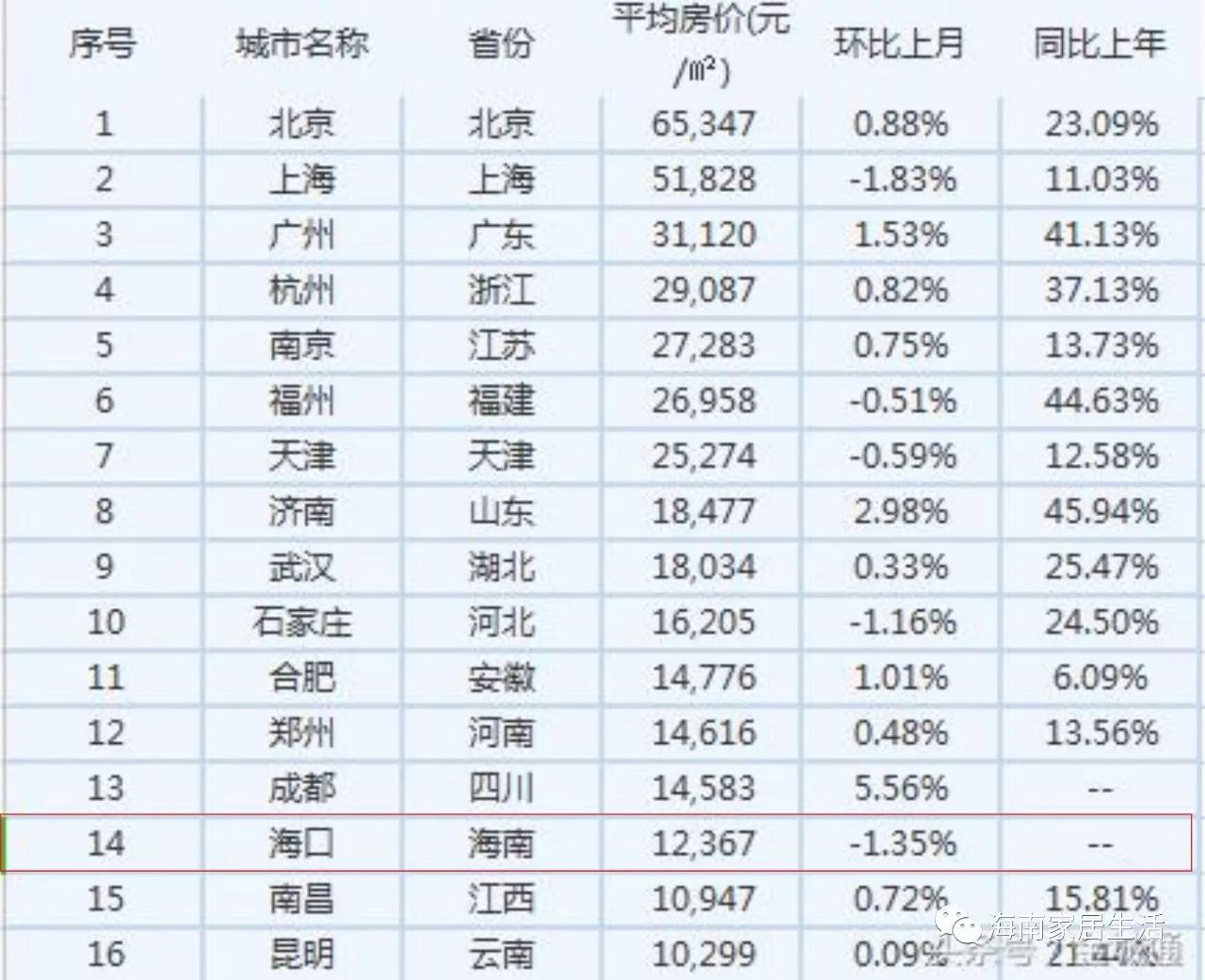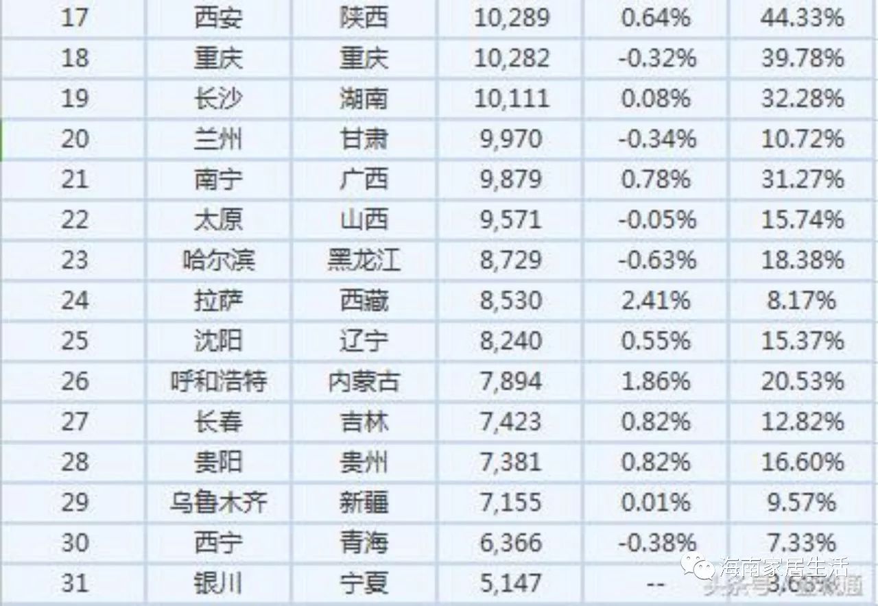 2017年12月全国省会房价排行,海口位居14!房价低于1万元的省会城市越来越少