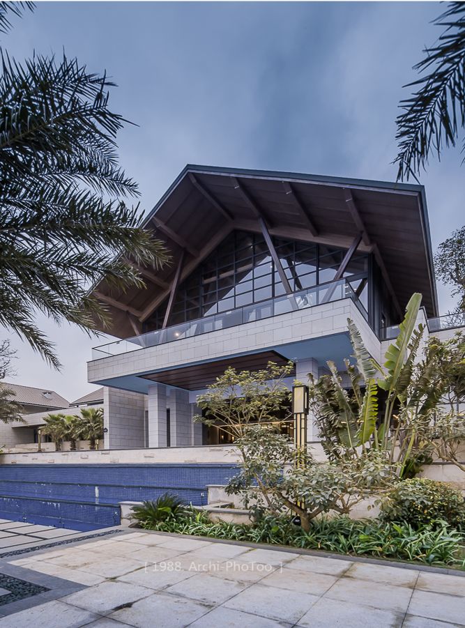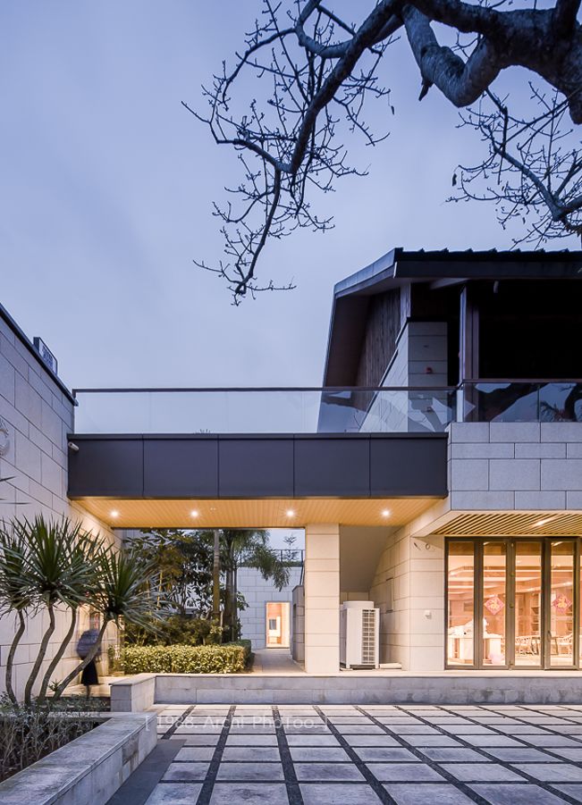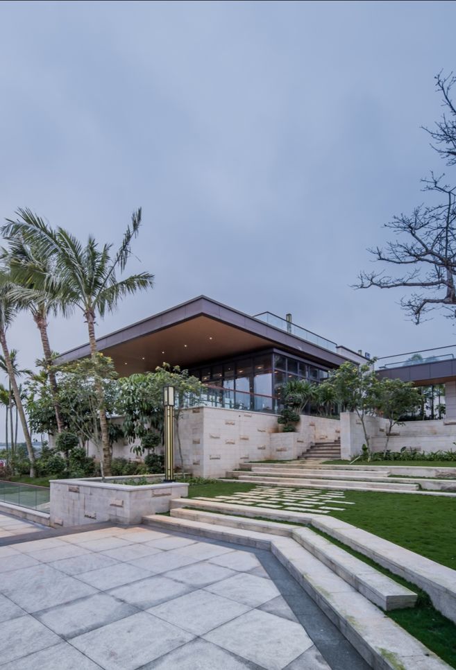 在设计中,建筑师依据场地的高程关系将项目用地划分为几个台地,几个功能区被分散开来、化整为零,建筑依次坐落在几个台地之上各抱地势、进退有致。建筑在形体的处理上干练纯粹,简洁有力的线条勾勒出建筑的基本轮廓,并通过体量的进退获得大量露台。