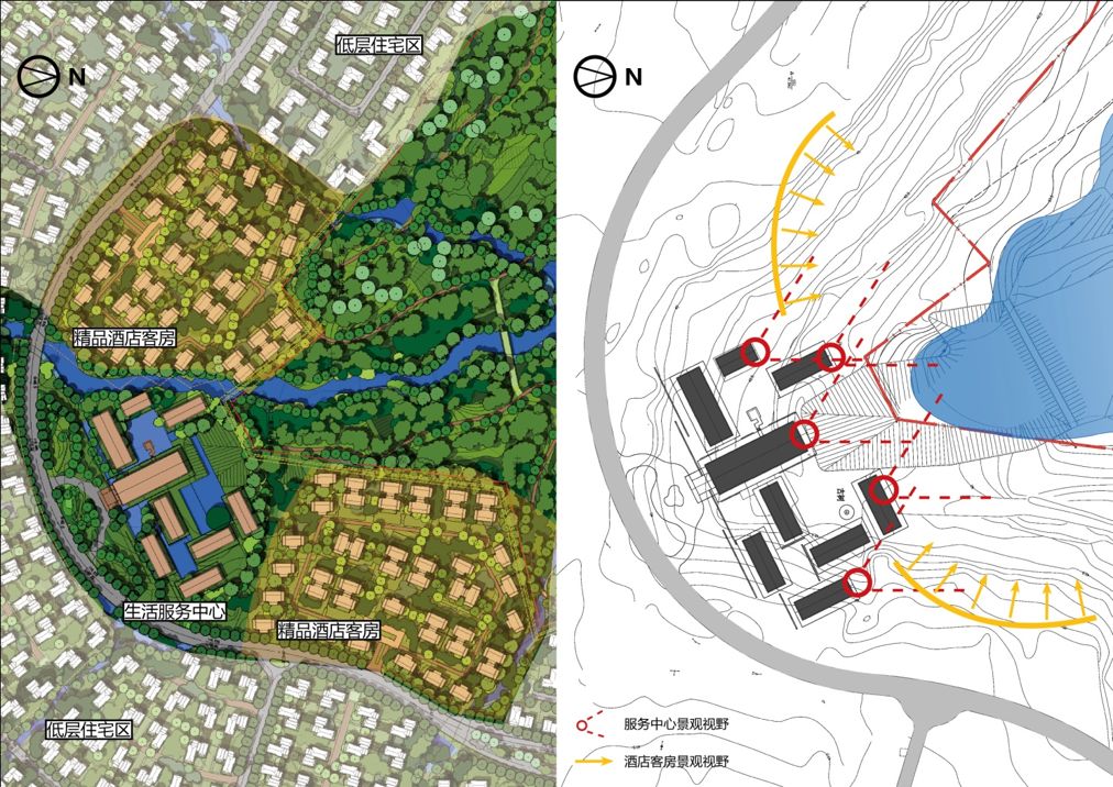 酒店项目分两期进行,一部分为酒店公共服务部分,另一部分为别墅型度假酒店客房。一期结束后临时作为桃李春风小镇的生活服务中心使用。