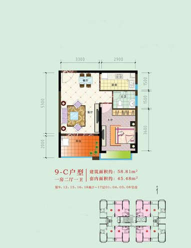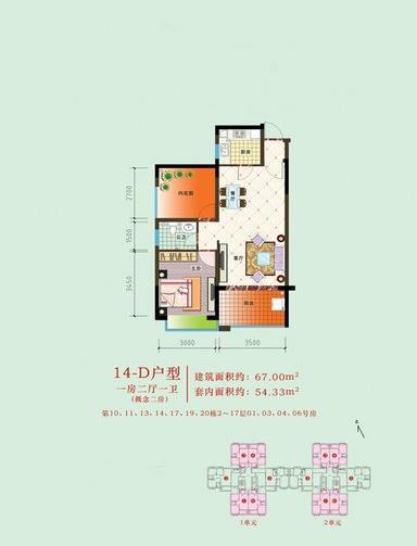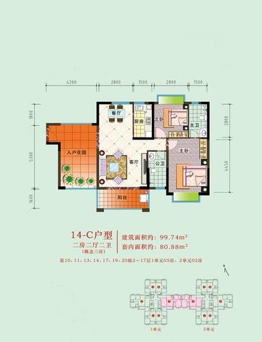 四季康城二期C区 67平朝南精装两房89万一套 配有泳池温泉