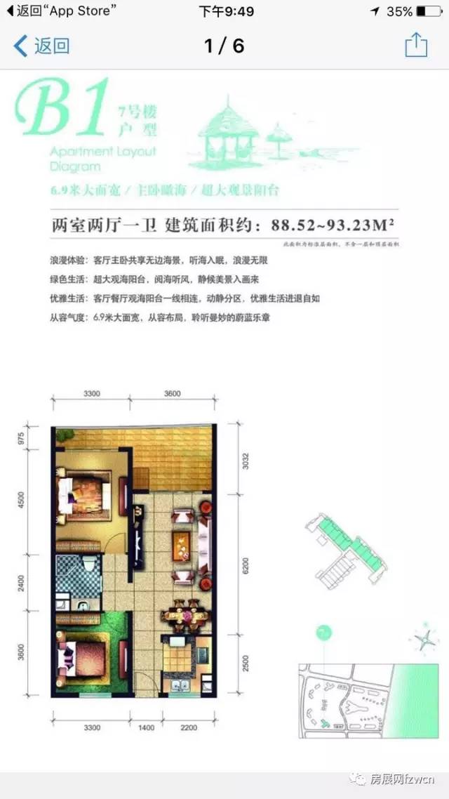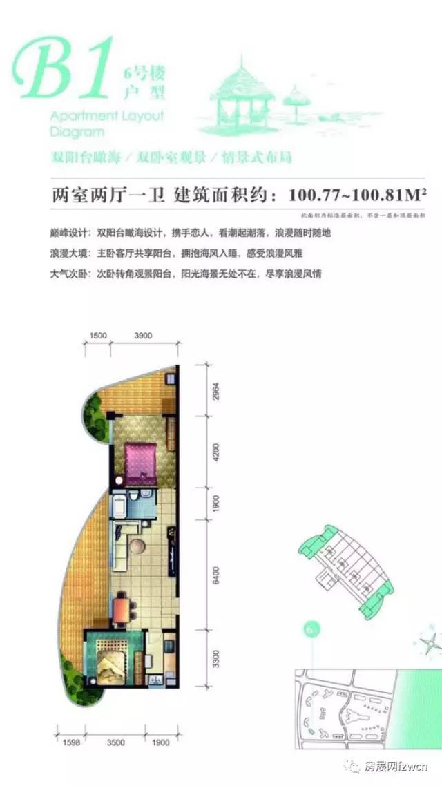 项目在售的一期由4栋18-20层的瞰海高层住宅组成,共1157户,5#、6#、7#楼为纯板式高层住宅,8#楼为点式高层住宅。其中5#、6#楼已基本售罄,目前仅剩少量少有大户型在售。7#楼为东南朝向,总高20层,4梯20户,主要销售产品为60㎡一房与88㎡两房;8#楼坐北朝南,由A/B/C3个单元组成,目前在售主力产品38㎡左右一房与65㎡左右小两房。同时7#、8#楼也有少量的复式及退台式产品在售。项目目前销售均价为毛坯房8500元/㎡,精装10000元/㎡。一次性付款9折,按揭付款92折,所有房源都是都现房交付,即买即住。