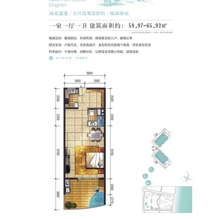 项目共分三期开发,所有产品在5楼以上,都可以看到大海。小区最远楼栋距离海边还不到500米,从小区内部直接步行即可直达沙滩和大海。不仅如此,小区还给业主提供400米的私属沙滩,3万平米的海边主题乐园,充分让业主领略到真正的海景大盘的风采。